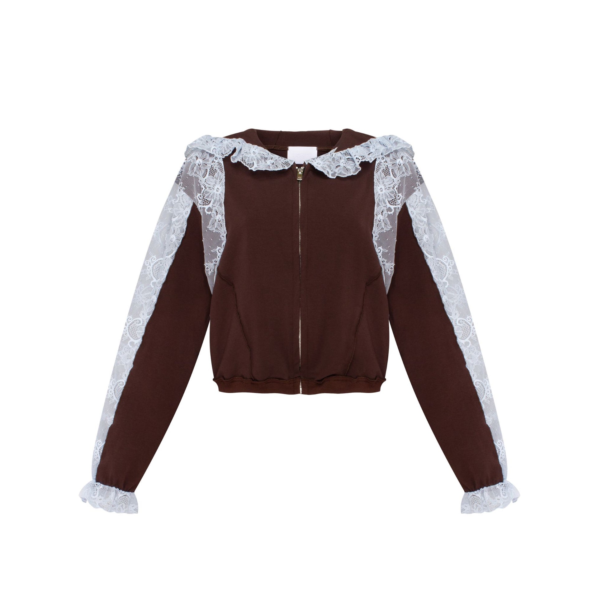 Hoodie in Brown with Blue Lace