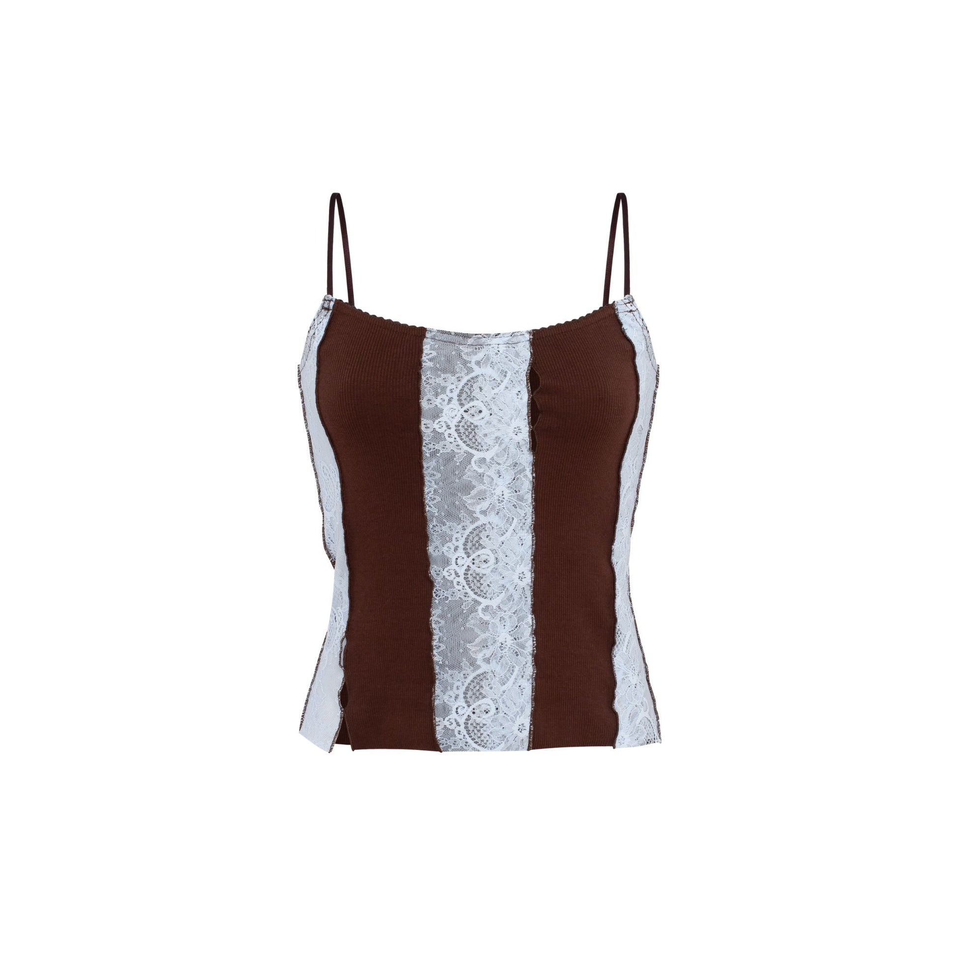 Tank Top in Brown with Blue Lace